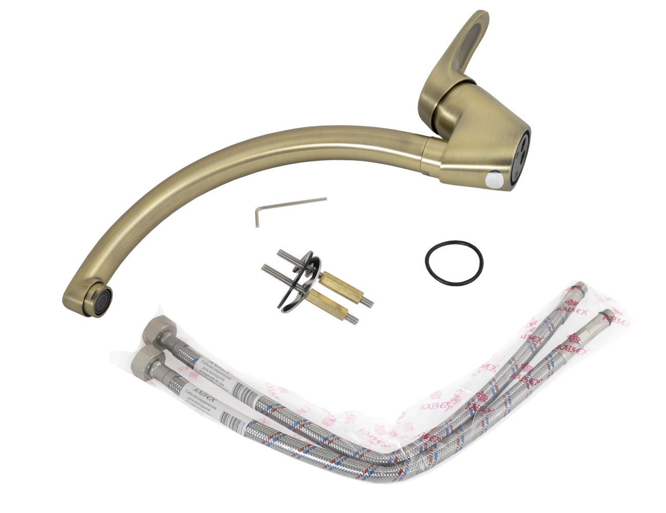 Смеситель для кухни Kaiser County 55244 выполнен в современном и стильном дизайне, превосходно сочетающимся в интерьере кухни. Надежная конструкция, встроенный керамический картридж и латунный корпус дают гарантию, что сантехника не утратит внешней привлекательности и своих функциональных качеств даже спустя длительное время.