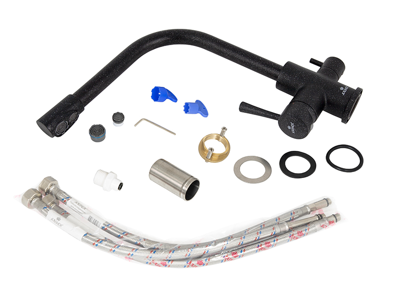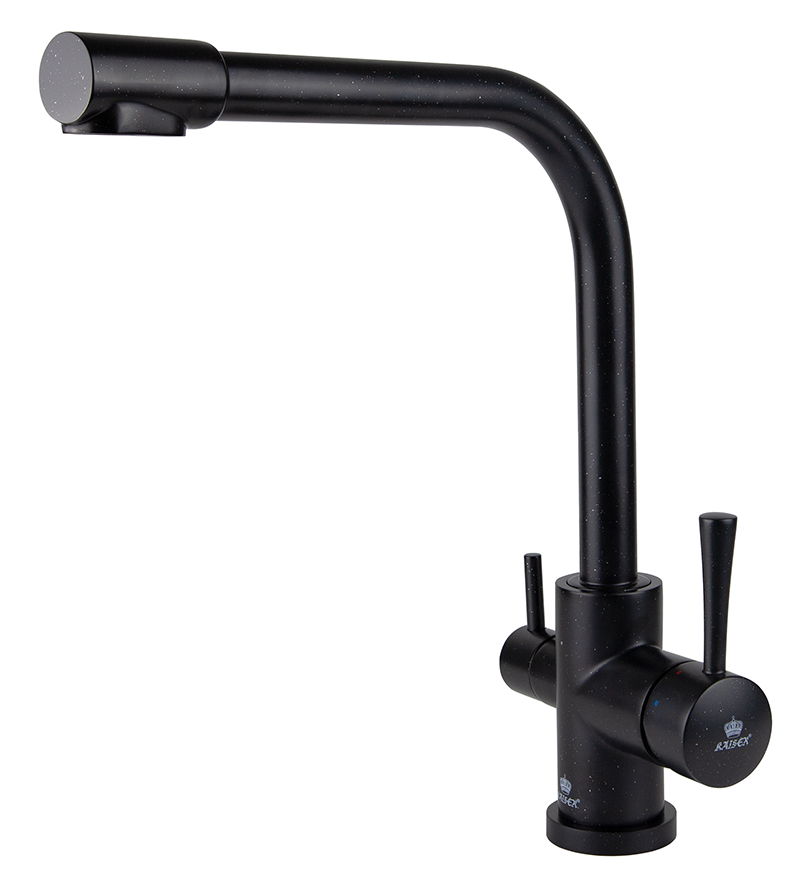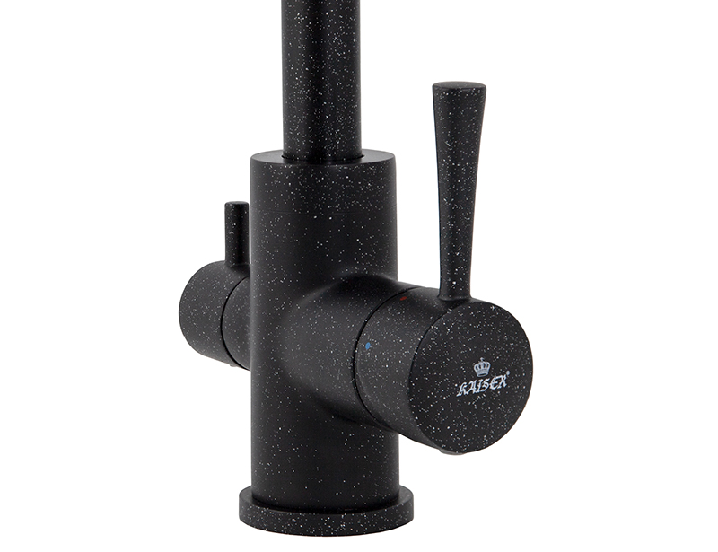 Смеситель Kaiser 26044-2 из коллекции Merkur с подключением под фильтр. Для подачи питьевой воды на корпусе смесителя размещен рычаг. Преимущество совмещенных смесителей заключается в том, что не нужно делать дополнительных отверстий на мойке и устанавливать отдельный кран для питьевой воды.