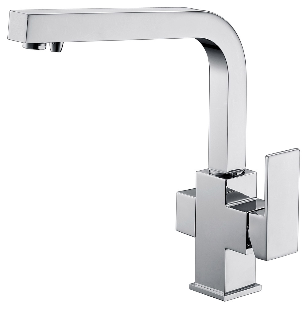Смеситель Kaiser 34044 из коллекции Sonat с подключением под фильтр. Для подачи питьевой воды на корпусе смесителя размещен отдельный рычаг. Смеситель имеет два аэратора для раздельного выхода проточной и фильтрованной воды, что исключает их смешивания. Преимущество совмещенных смесителей заключается в том, что не нужно делать дополнительных отверстий на мойке и устанавливать отдельный кран для питьевой воды.