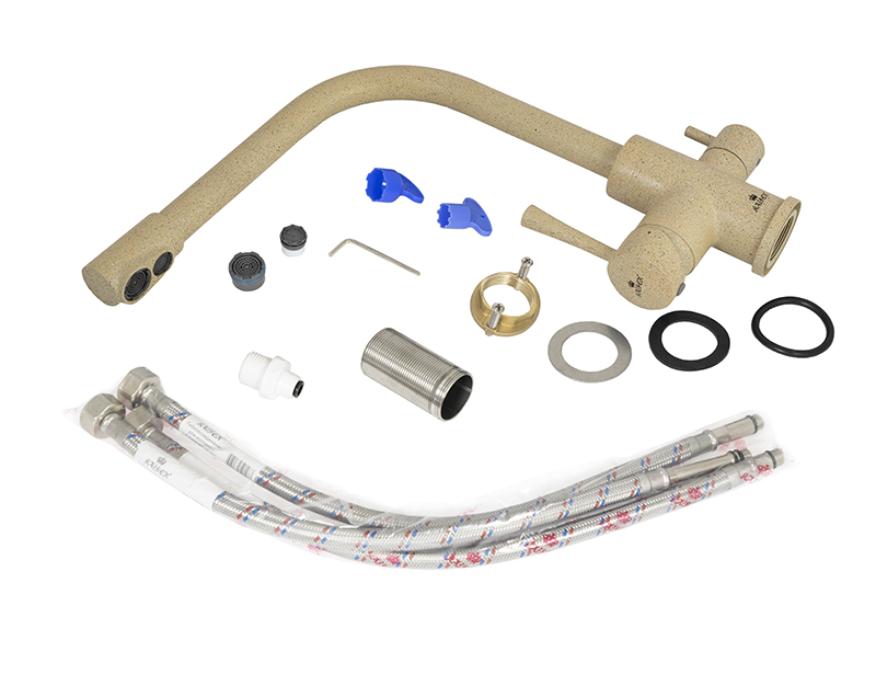 Смеситель Kaiser 26044-16 из коллекции Merkur с подключением под фильтр. Для подачи питьевой воды на корпусе смесителя размещен рычаг. Преимущество совмещенных смесителей заключается в том, что не нужно делать дополнительных отверстий на мойке и устанавливать отдельный кран для питьевой воды.