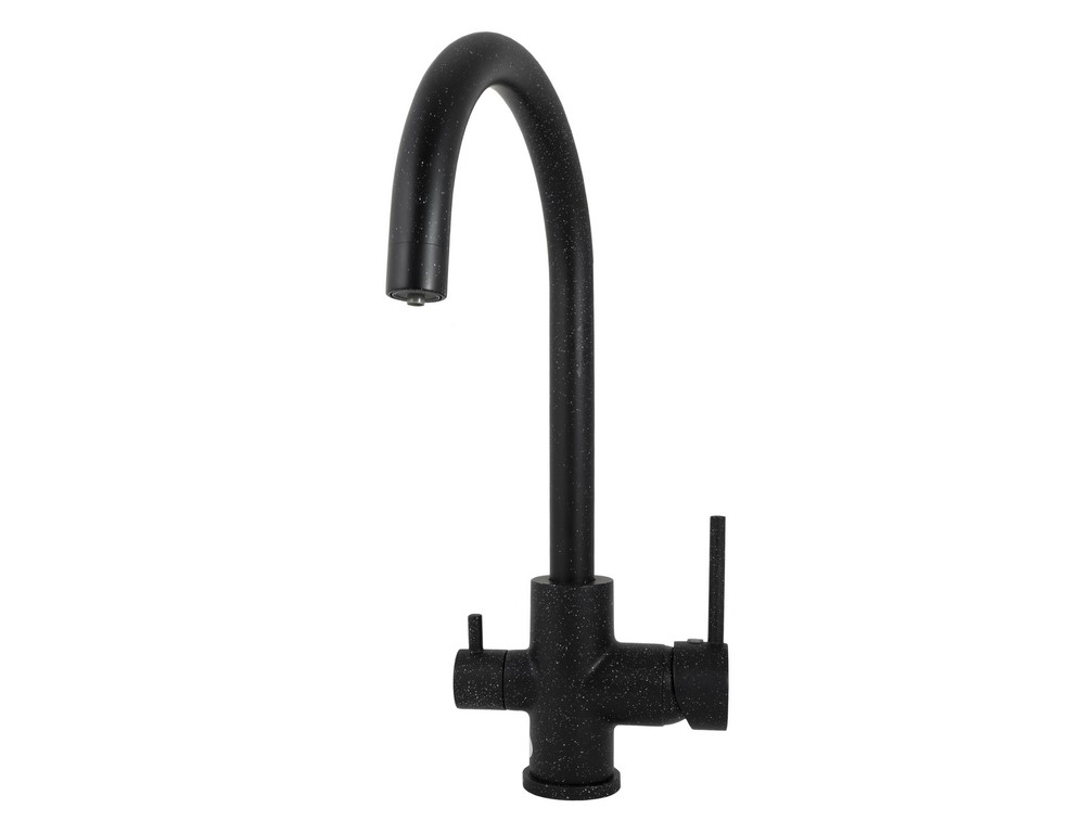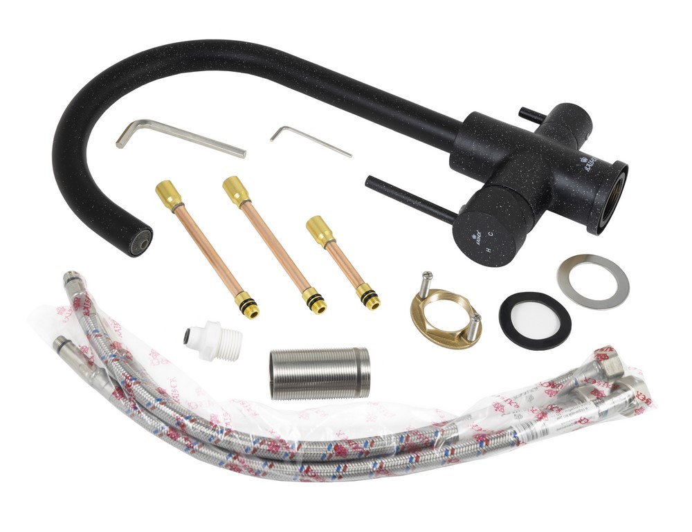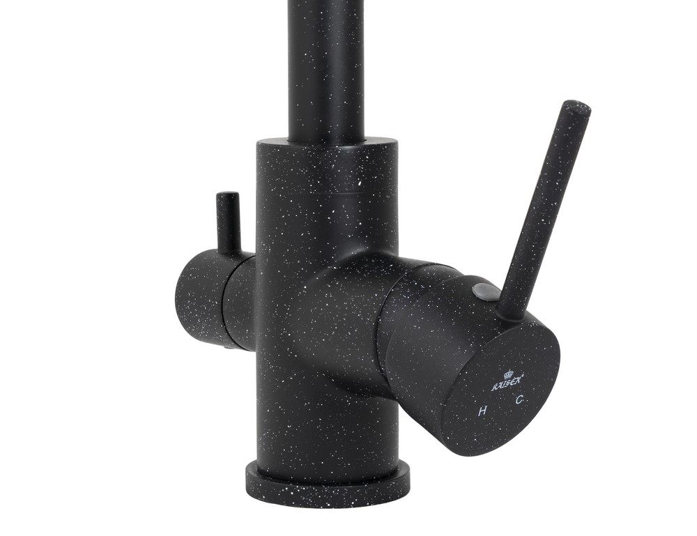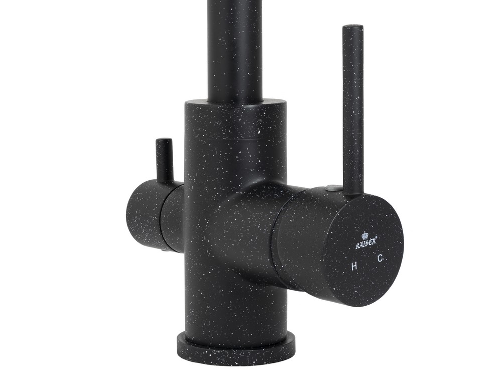 Смеситель Kaiser 26744-12 из коллекции Merkur с подключением под фильтр. Смеситель имеет сдвоенный аэратор, внутри излива проходит трубка для фильтрованной воды, что исключает возможность смешивания с проточной водой. Для подачи питьевой воды на корпусе смесителя размещен рычаг. Преимущество совмещенных смесителей заключается в том, что не нужно делать дополнительных отверстий на мойке и устанавливать отдельный кран для питьевой воды.