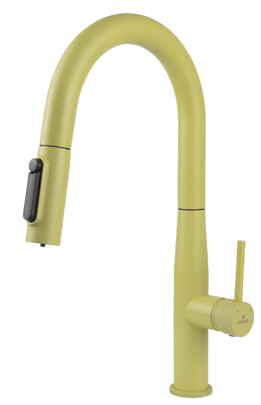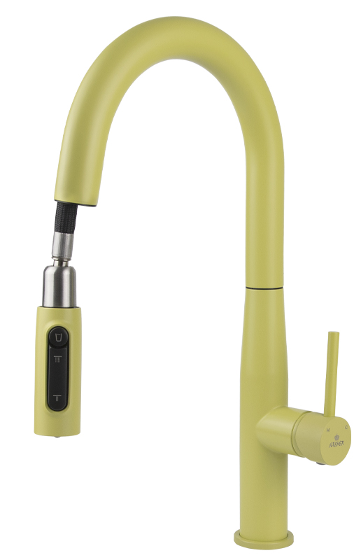 Смеситель KAISER Vita для кухни с вытяжной лейкой и подачей фильтрованной воды, цвет покрытия жёлтый