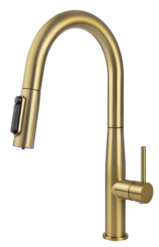 Смеситель KAISER Vita для кухни с вытяжной лейкой и подачей фильтрованной воды, цвет покрытия шлифованное золото