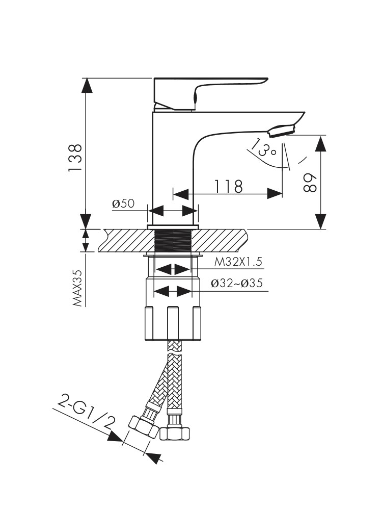 Высота излива, мм