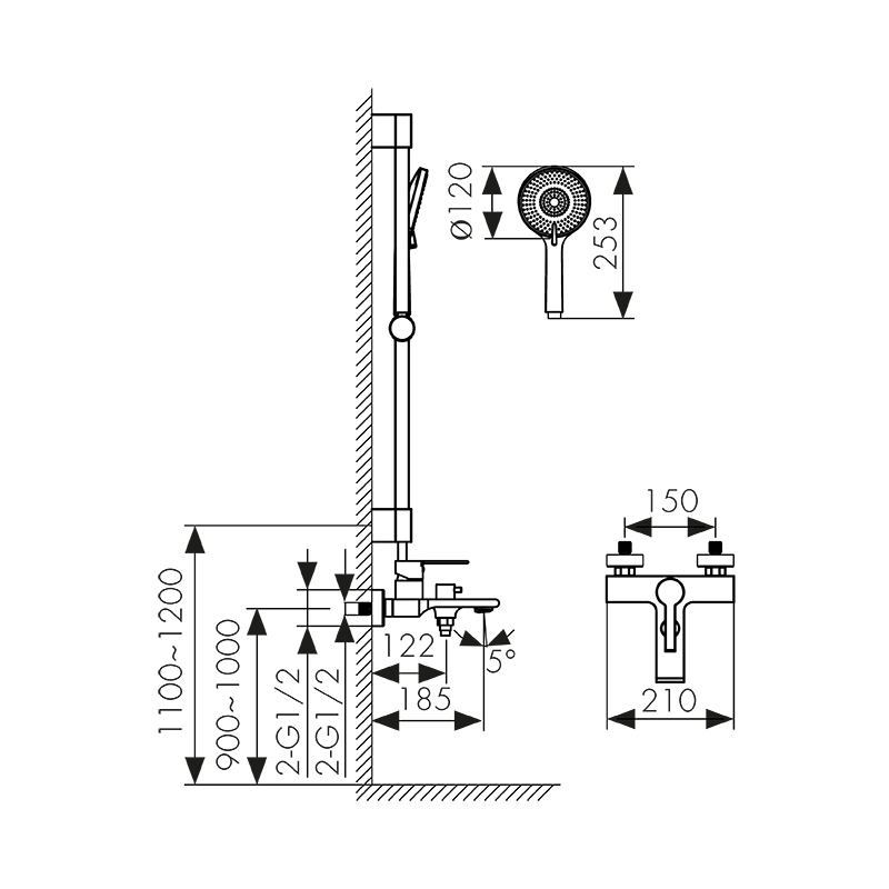 Комплект для ванны KAISER Serio с душевым гарнитуром R-1140 и ручной лейкой SH-090