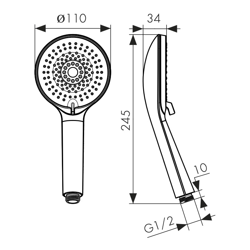 Размер ручной лейки, мм