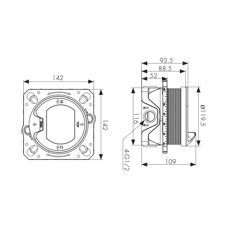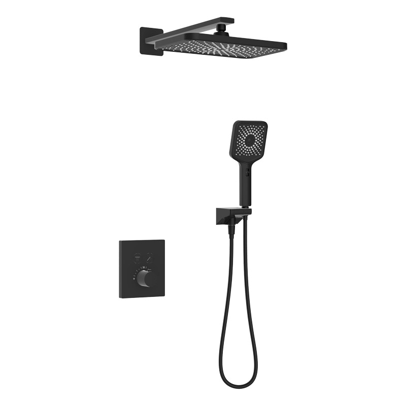Душевая система KAISER Sano скрытого монтажа с термостатом. Поворотный держатель, совмещённый со шланговым подключением.