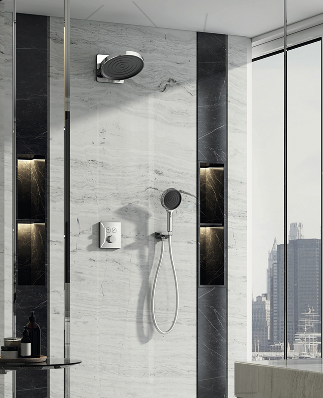 смеситель скрытого монтажа, скрытая монтажная часть, кронштейн, лейки, настенное соединение шланга с поворотным держателем, шланг, крепления