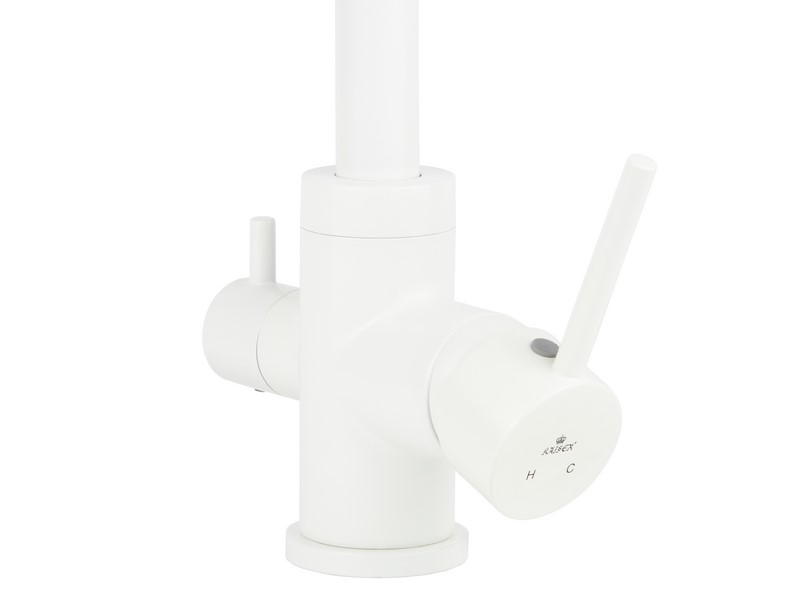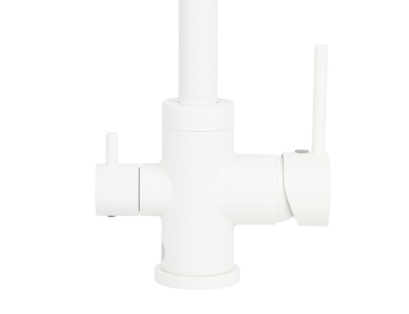 Смеситель Kaiser 26744-4 из коллекции Merkur с подключением под фильтр. Смеситель имеет сдвоенный аэратор, внутри излива проходит трубка для фильтрованной воды, что исключает возможность смешивания с проточной водой. Для подачи питьевой воды на корпусе смесителя размещен рычаг. Преимущество совмещенных смесителей заключается в том, что не нужно делать дополнительных отверстий на мойке и устанавливать отдельный кран для питьевой воды.
