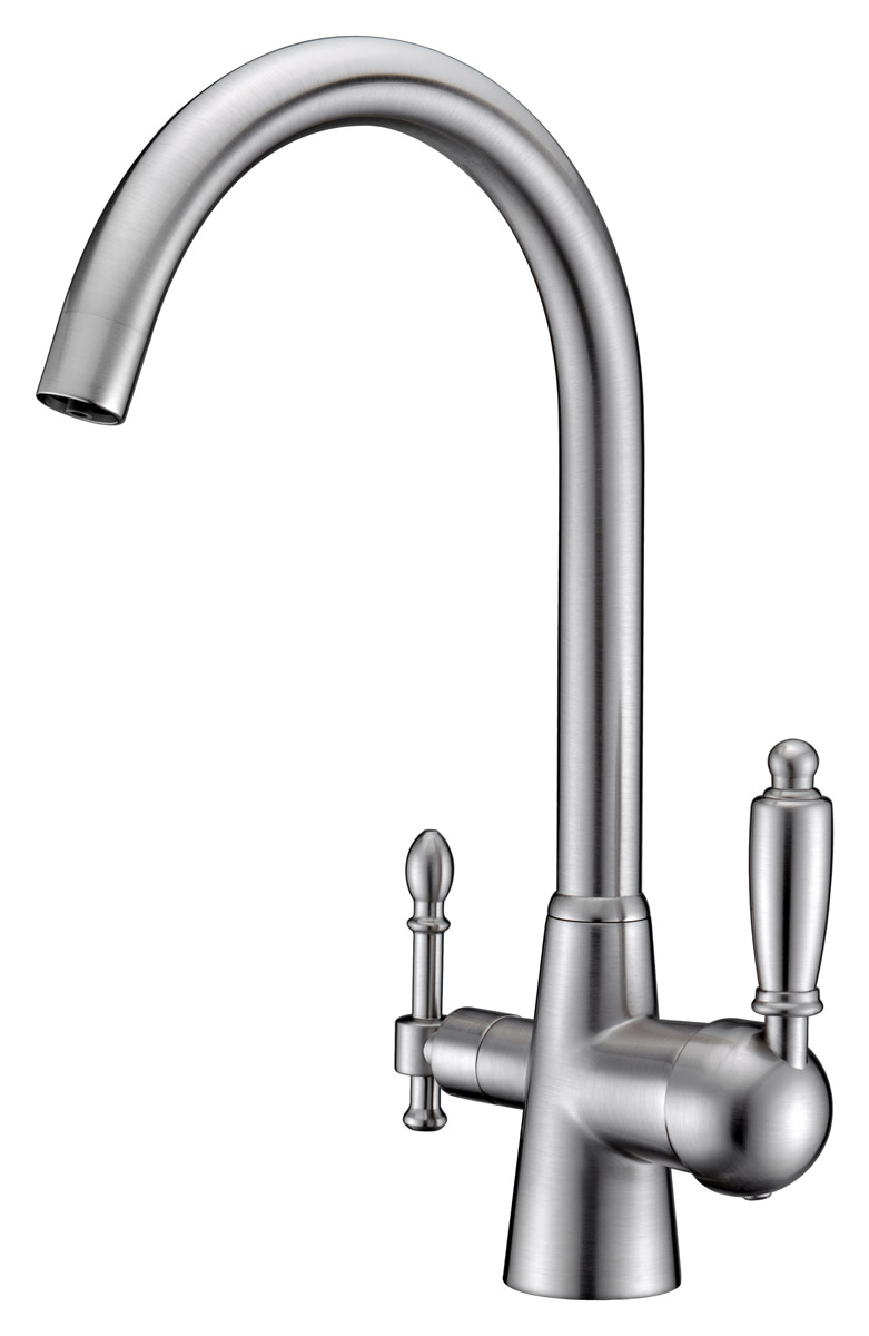 Отдельный переключатель для питьевой воды подсказывает, что смеситель оснащен функцией для подключения фильтрованной воды.