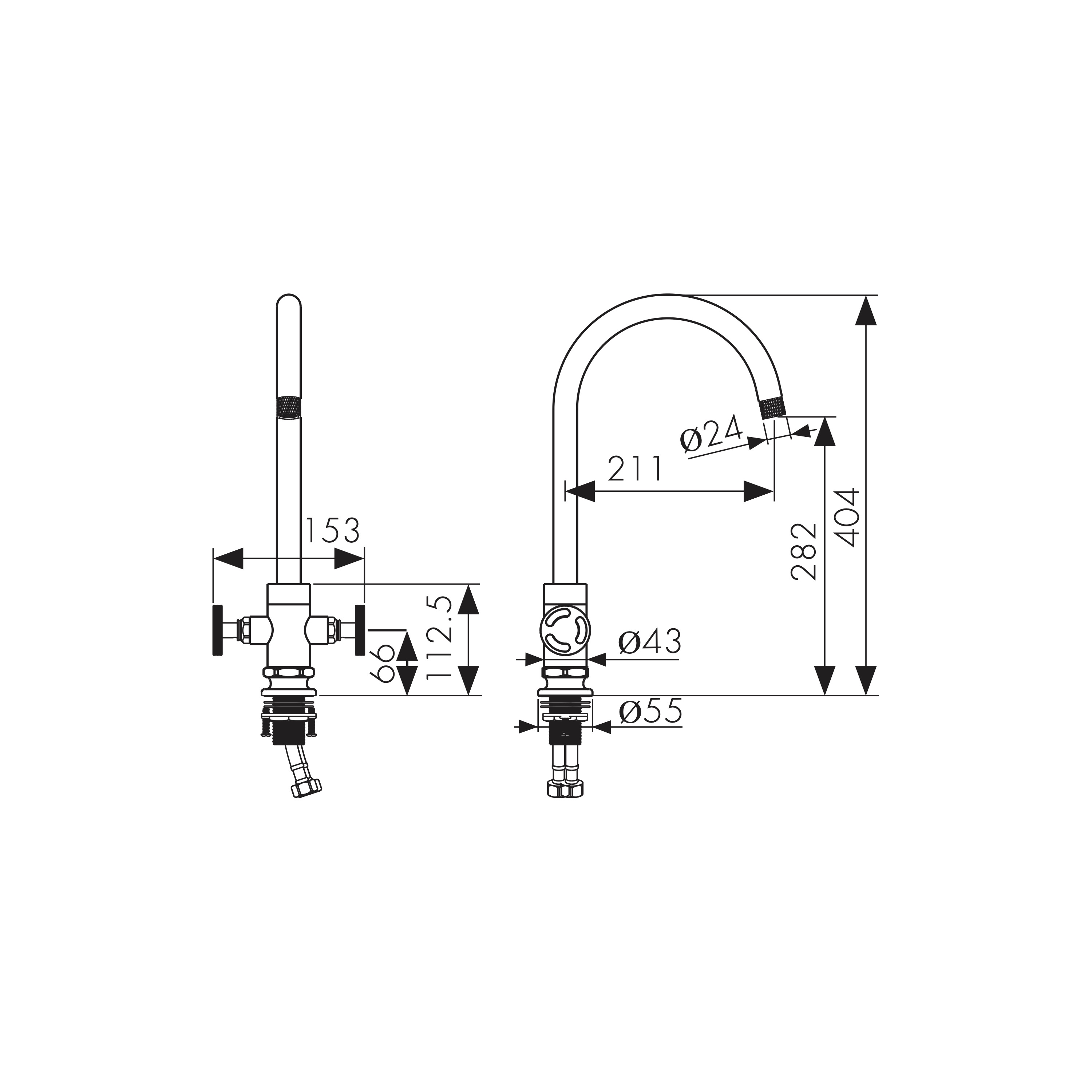 Смеситель 17233 Kaiser Topaz для кухни с двумя рукоятками. Поток воды направлен под углом 10˚.