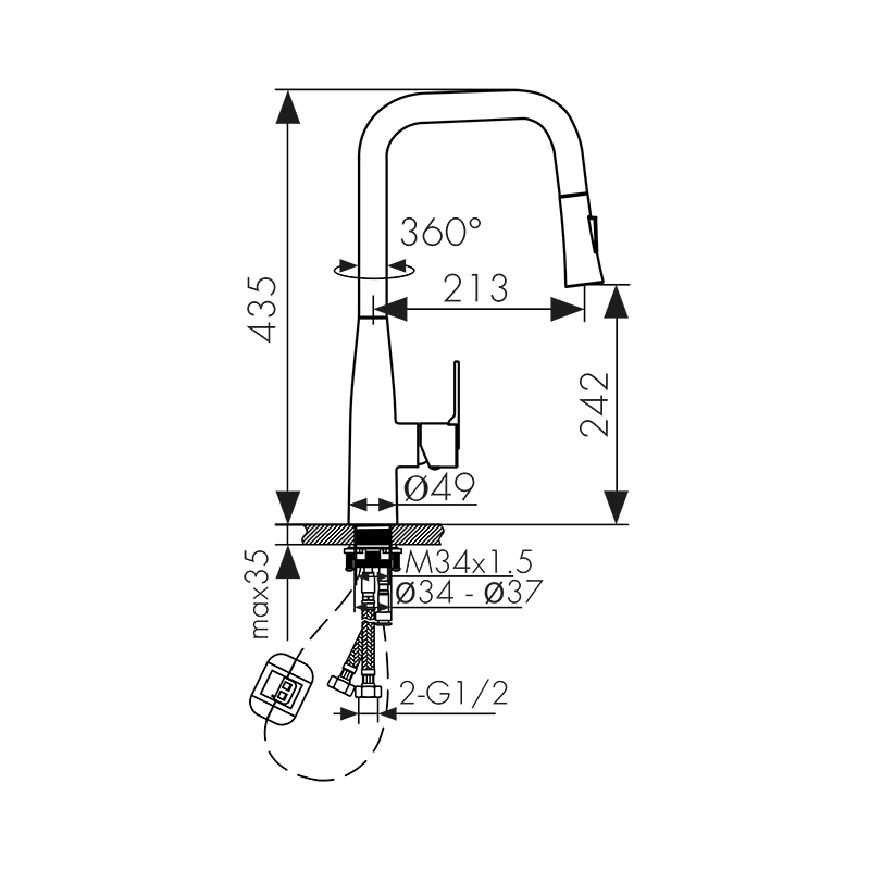 Смеситель KAISER Claro для кухни с вытяжной лейкой.