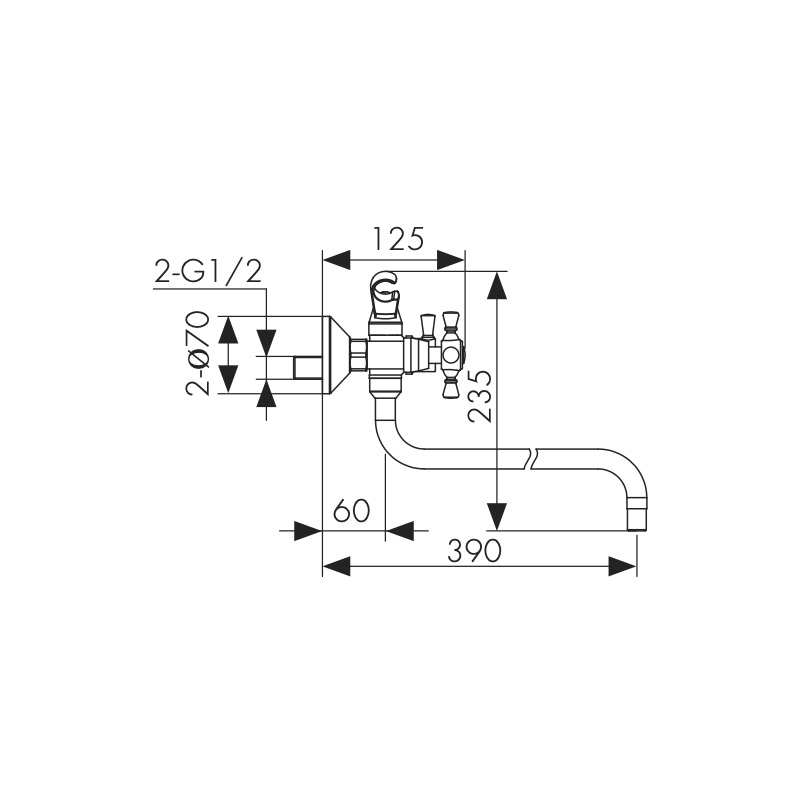 Смеситель KAISER 11070SH Carlson Style для ванны с двумя рукоятками.