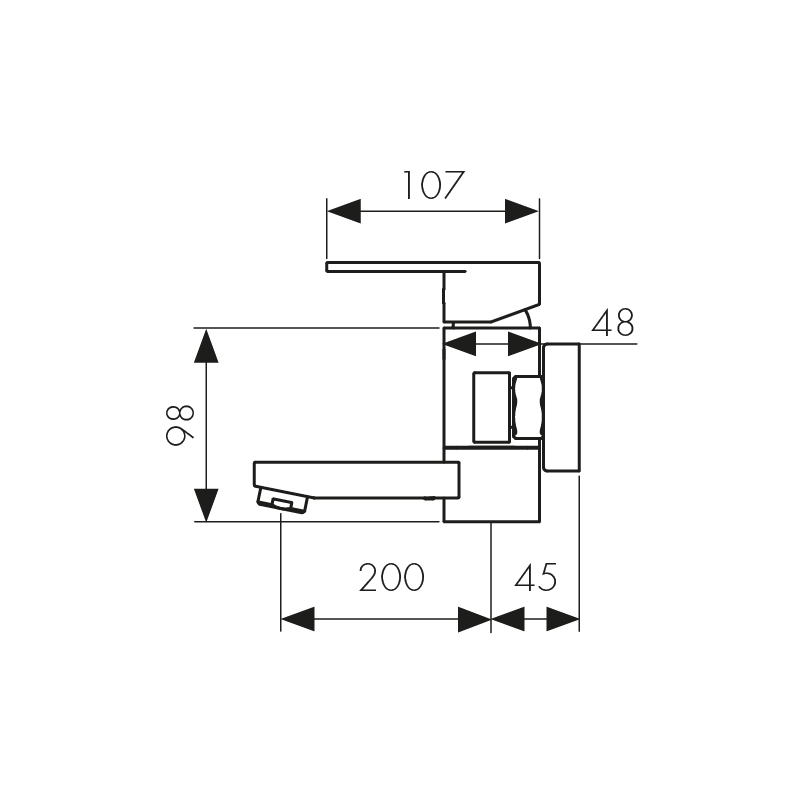 Смеситель однорычажный для ванны с коротким изливом (скрытый дивертор)