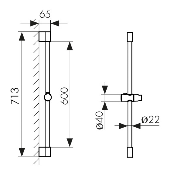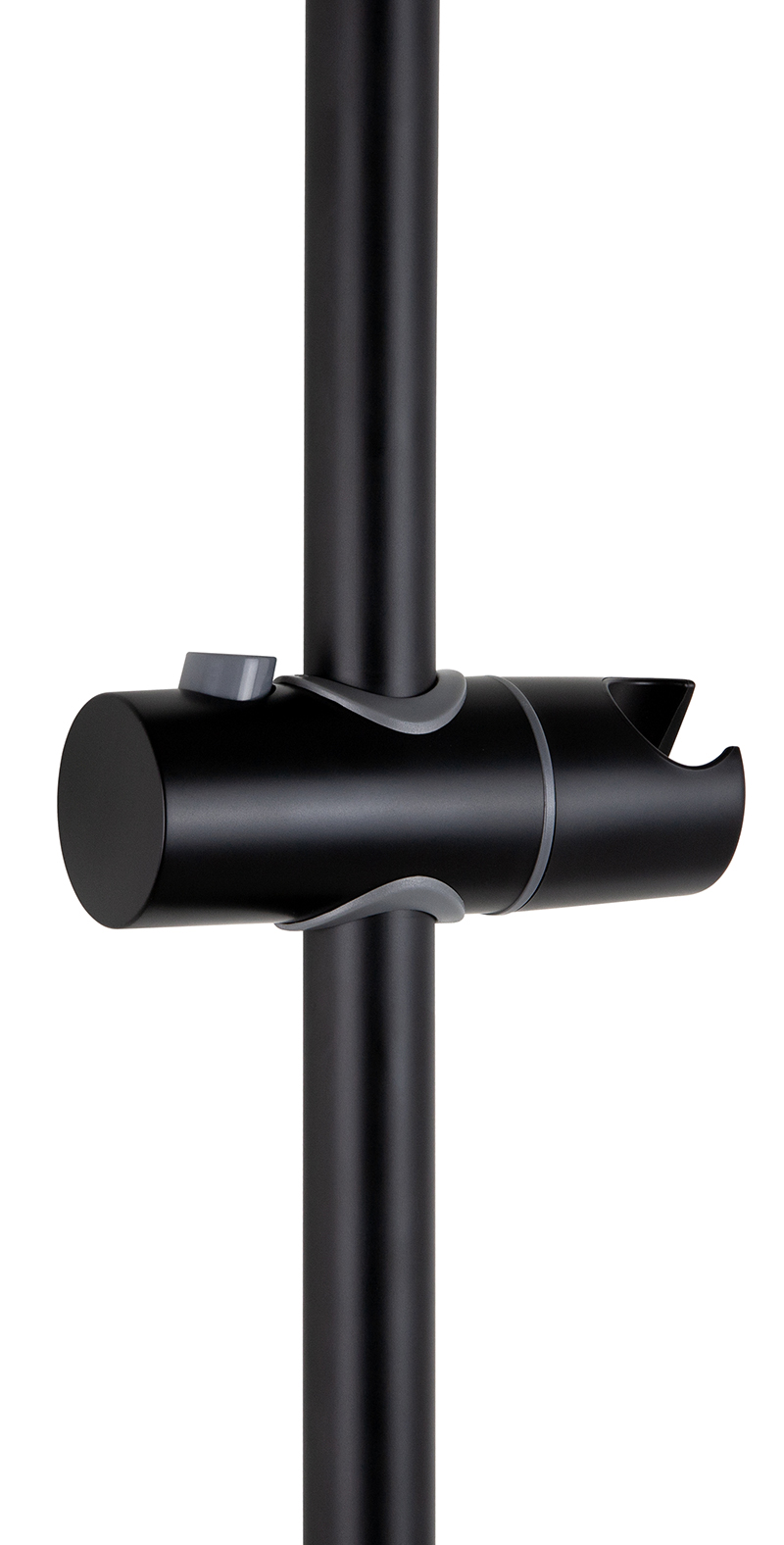 На стойке крепится входящий в комплект держатель для душевой лейки. Держатель для лейки - перемещается и фиксируется по всей высоте и имеет поворотный механизм с изменением угла наклона.